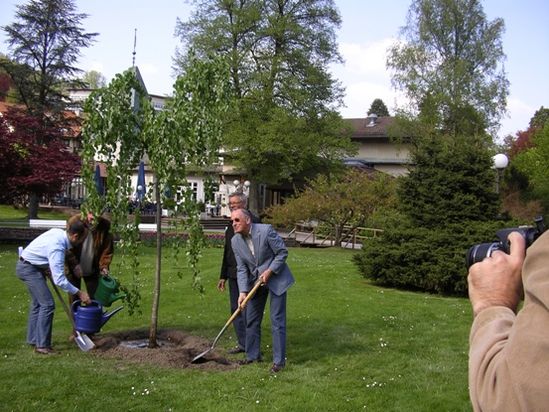 SPD-Mitglieder pflanzen einen Kuchenbaum im KurparkDie Versammlung von Mitgliedern des SPD-Ortsvereins zusammen mit der Wählerinitiative "Bürger für Bad Herrenalb" sprach sich am 10. Juni einstimmig gegen eine Entlastungsstraße durch den Kurpark aus. "Wer für die Entlastungsstraße ist, gibt den Kurpark auf", so der Tenor vieler Redebeiträge im Hotel am Kurpark.