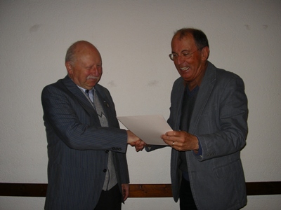Siegfried Grießhammer mit Rainer MerkleZugunsten des Festivals der Guten Taten hatten Frau Dr. Zeller, Vorsitzende des Stadtseniorenrates, und der SPD-Ortsvereinsvorsitzende Rainer Merkle zu einem unterhaltsamen Nachmittag mit Siegfried Grießhammer in die Seniorenbegegnungsstätte eingeladen.